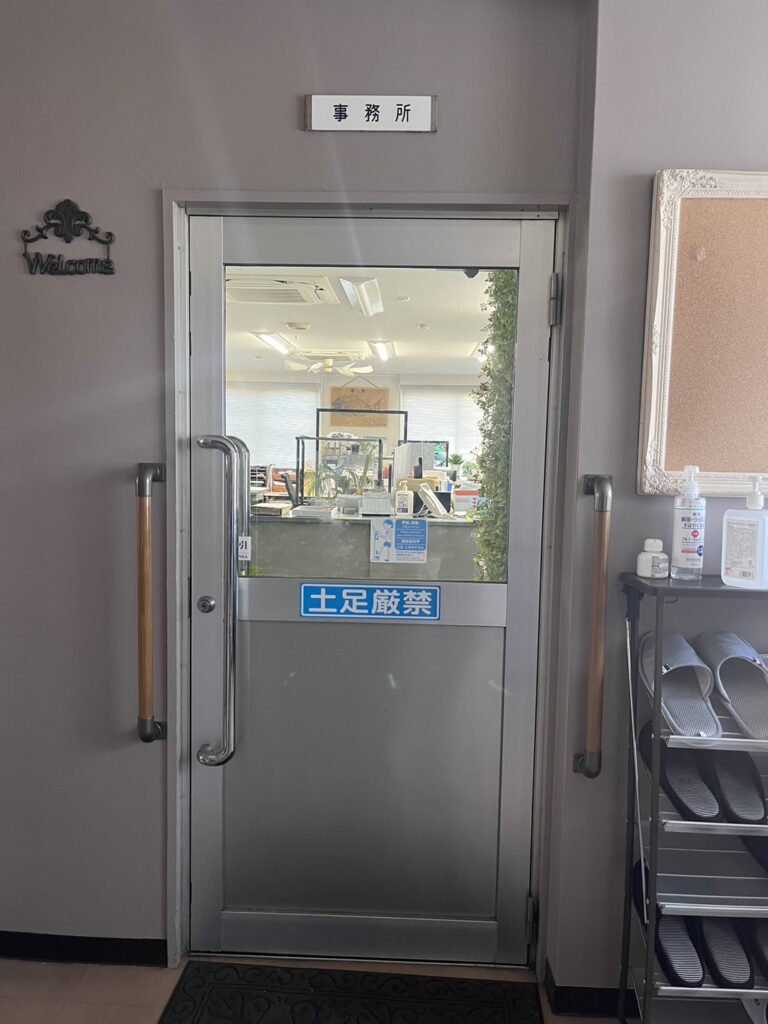 左側に【事務所】とかいてある部屋がありますので、こちらの扉から靴を脱いでお入りください。
